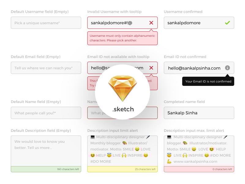 Simple, Functional and Multi-state Input Fields .Sketch file - By Sankalp Sinha